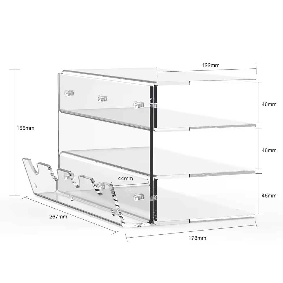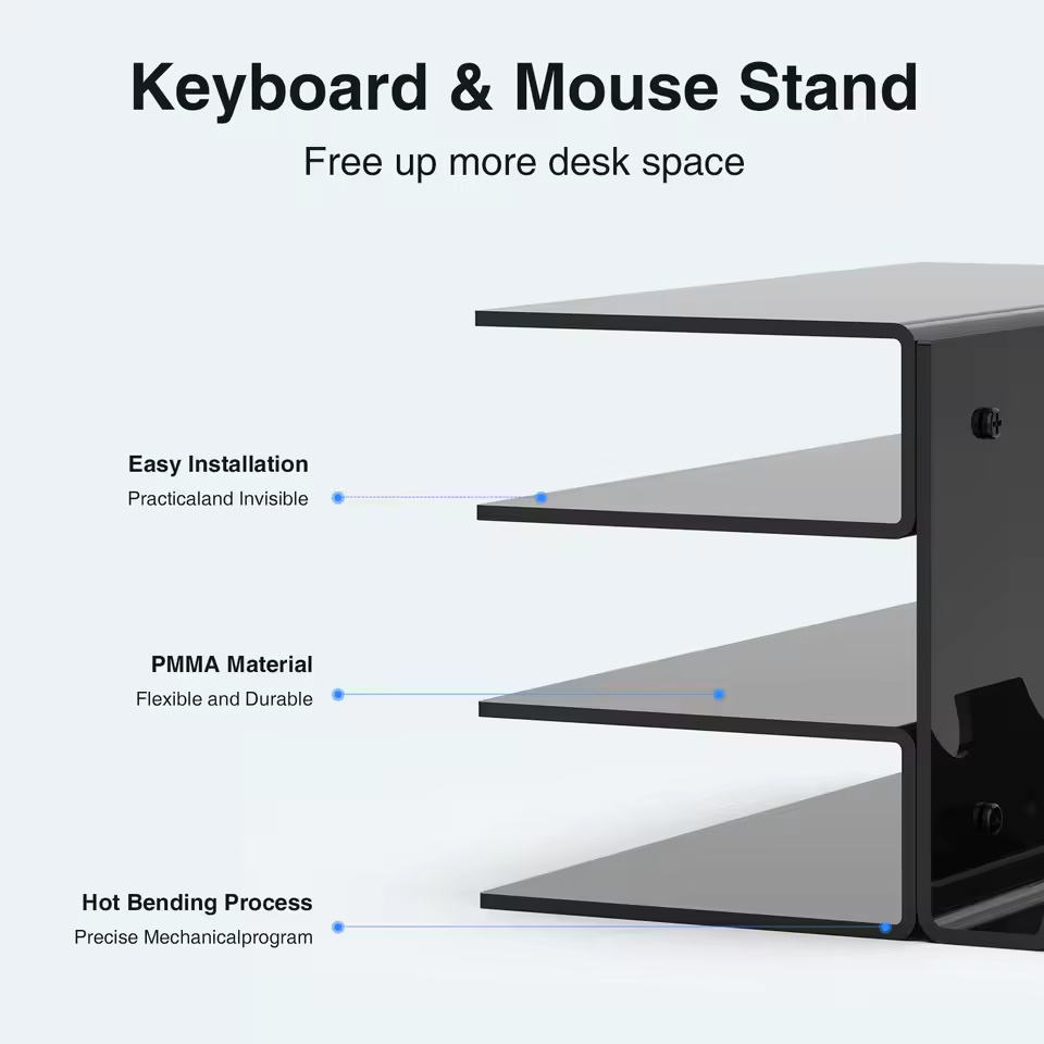 Acrylic Keyboard Plate Display Stand – 3-Tier Ergonomic Storage for Mechanical Keyboards & Mouse | Stylish Transparent Holder